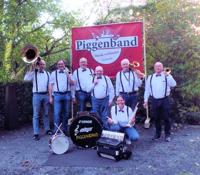 Unsere Besetzung: Flügelhorn u. Leitung: Petra Akkordeon: Klaus Große Trommel: Stephan Saxophon: Rolf Klarinette: Hubert 1. Trompete: Paul 2. Trompete: Karl-Heinz Tuba: Jonas Schlagzeug: Guido
